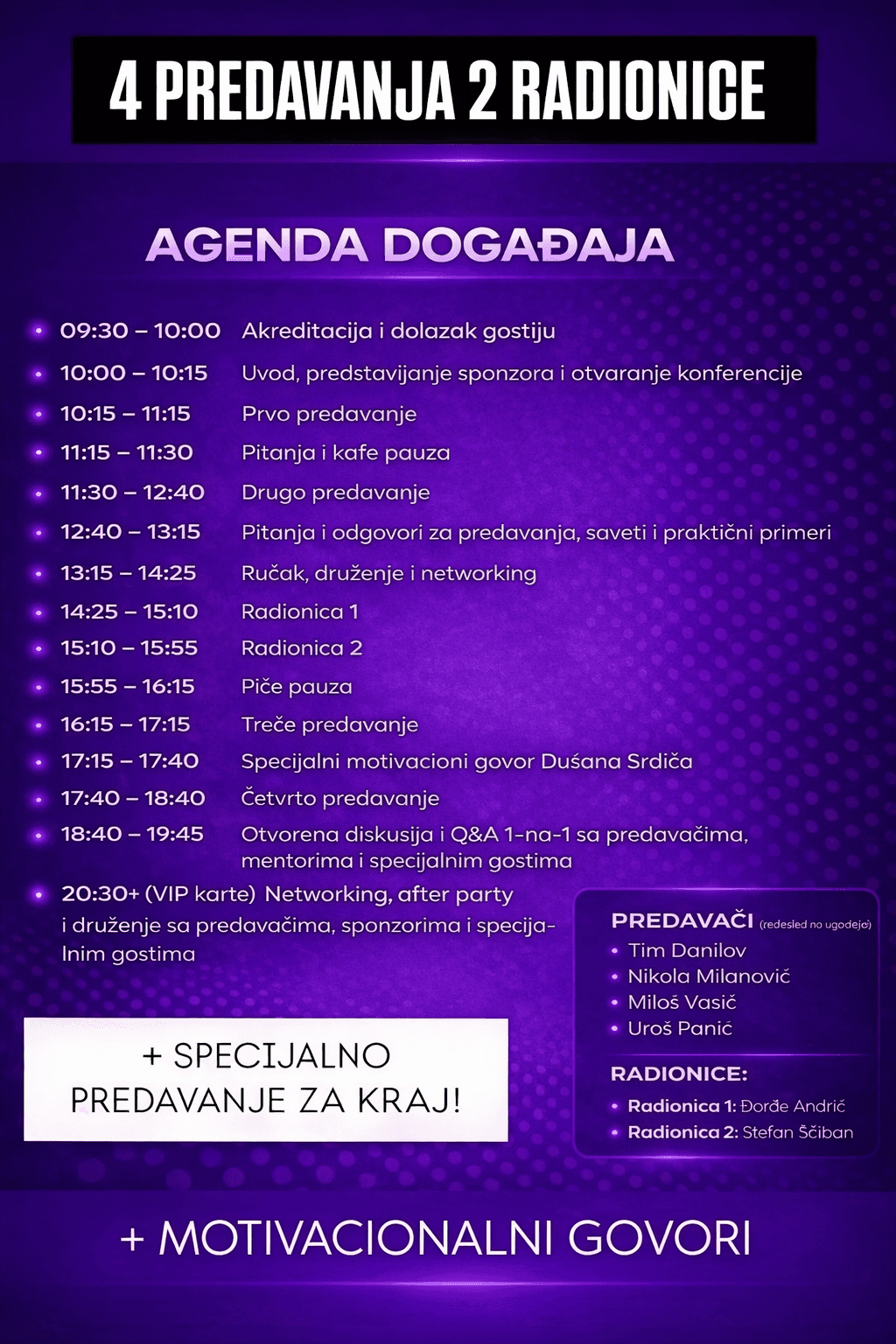 Program je strukturiran tako da donosi vrednost i početnicima i naprednim učesnicima. Biće kombinacija strateških uvida i konkretnih, primenljivih saveta.